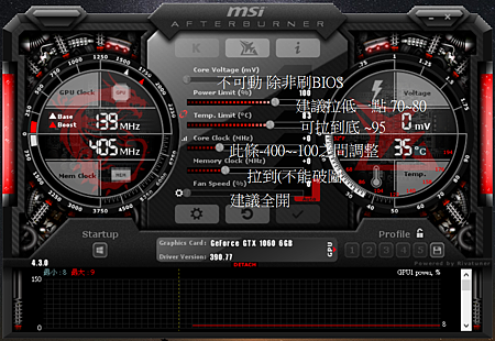 請自行注意 核心頻率core clock 本身會降低顯卡效能 挖以太不吃這個 但要做其他方面的事記得調回原廠